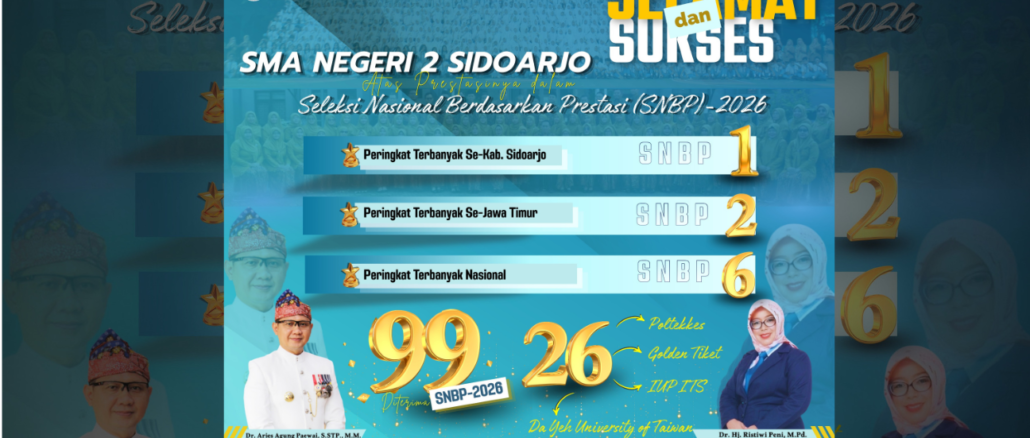 Kabar membanggakan kembali datang dari SMA Negeri 2 Sidoarjo. Sejumlah siswa berhasil meraih Golden Ticket atau jalur penerimaan khusus menuju perguruan tinggi negeri ternama di […]