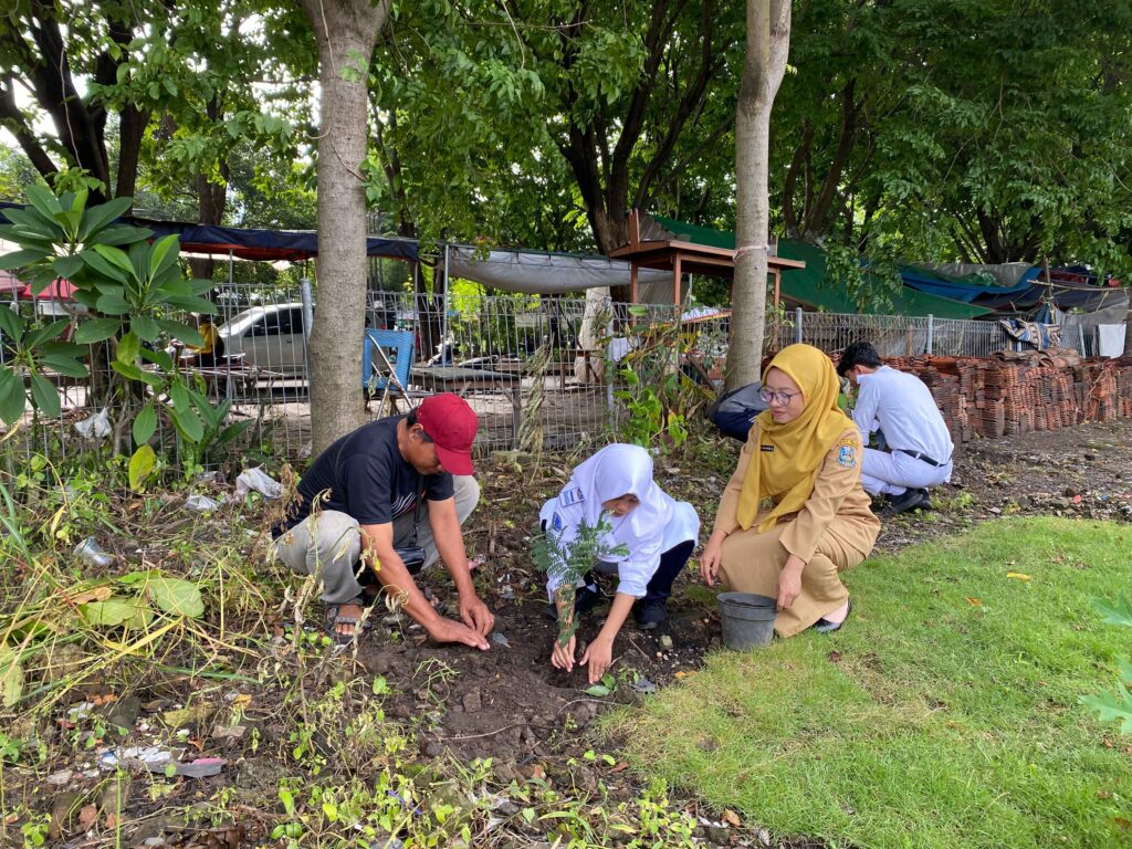 Selanjutnya, Tim Adiwiyata bersama warga setempat melaksanakan penanaman pohon di sejumlah titik yang telah ditentukan. Kegiatan berlangsung dengan tertib dan penuh semangat kebersamaan, mencerminkan komitmen bersama untuk menciptakan lingkungan yang hijau, asri, dan berkelanjutan.